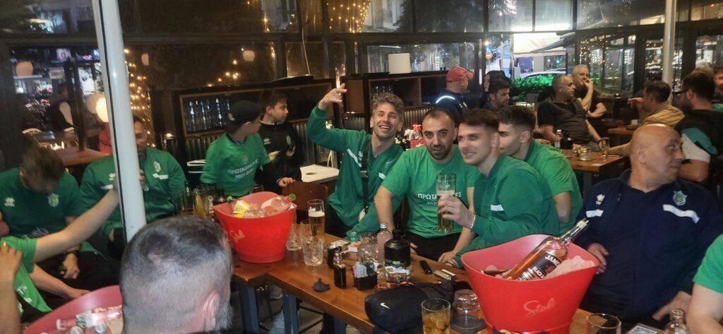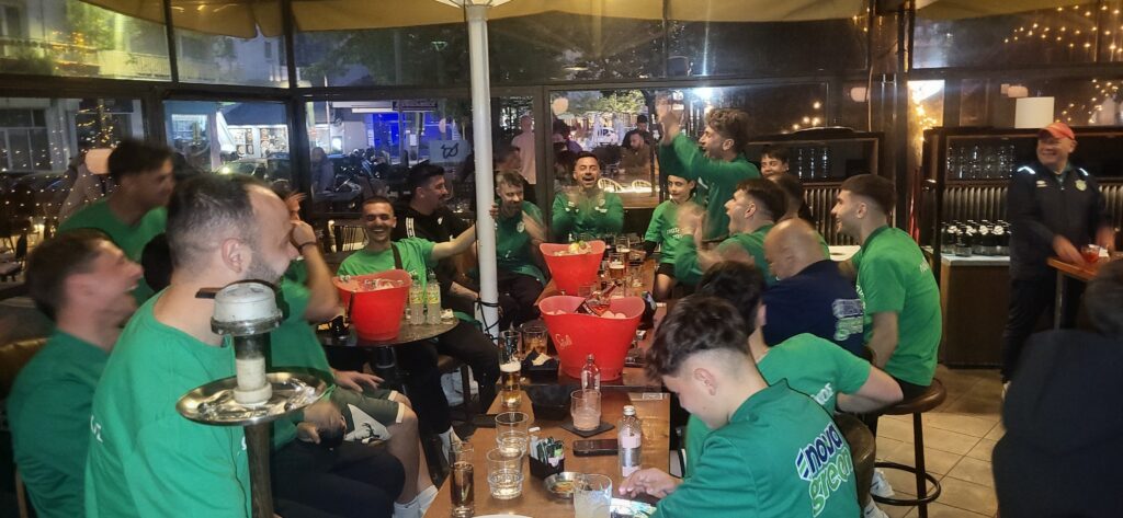 Οι ποδοσφαιριστές και η διοίκηση της ομάδος διασκέδασαν την άνοδο στο ΤΗΜΕΝΙΔΩΝ καφέ στην Έδεσσα