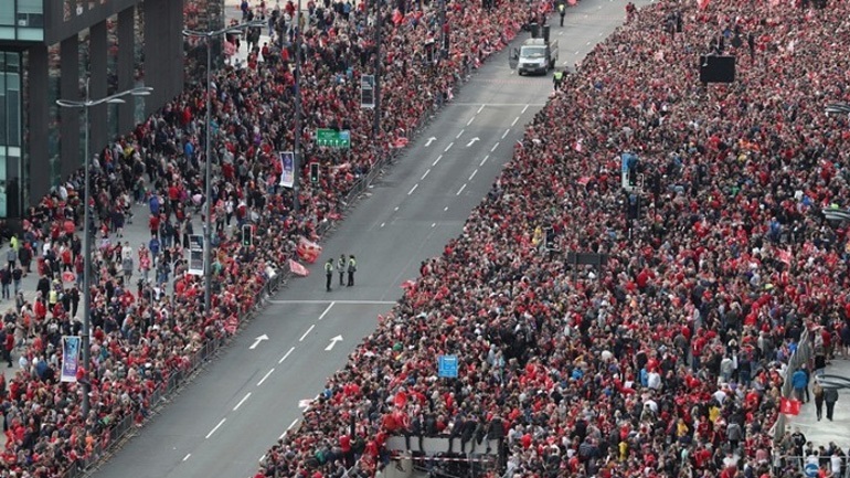 «Παρέλαση» στους δρόμους του Λίβερπουλ με τελικό προορισμό το κέντρο της πόλης, πάνω σε ένα κατακόκκινο διώροφο ανοιχτό λεωφορείο, έκαναν οι παίκτες του Γιούργκεν Κλοπ, γνωρίζοντας την αποθέωση από τους φιλάθλους τους για την κατάκτηση του 6ου τροπαίου του Champions League στην ιστορία του συλλόγου.
