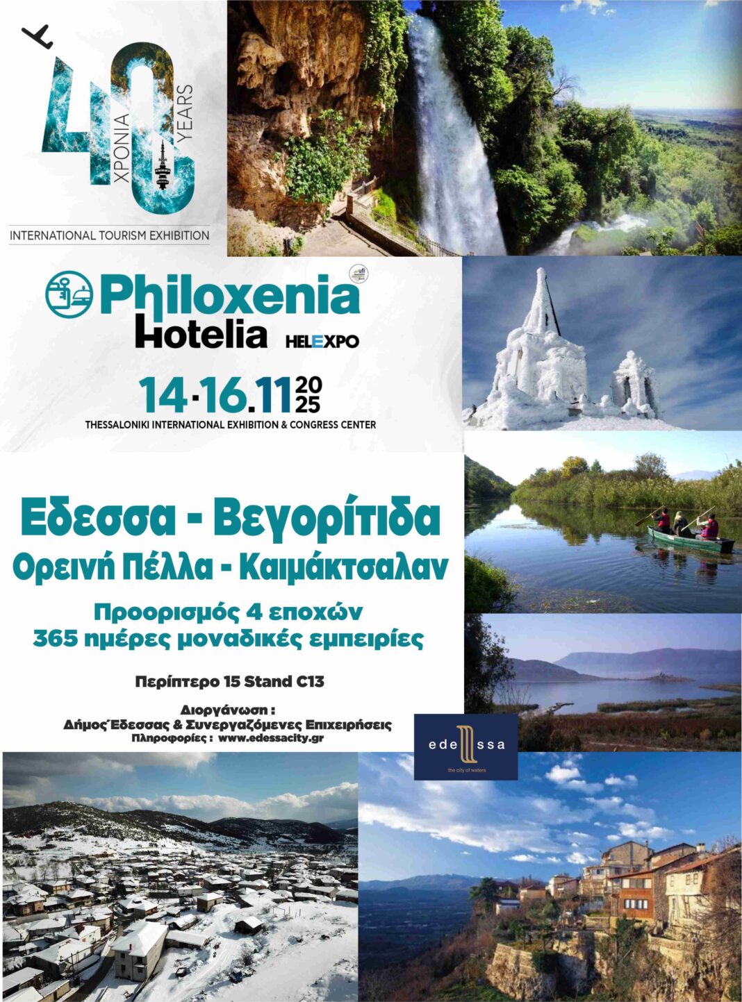 Ο Δήμος Έδεσσας συμμετέχει στην φετινή έκθεση Τουρισμού Philoxenia 2025 στο εκθεσιακό κέντρο της Θεσσαλονίκης (14-16 Νοεμβρίου) η οποία κλείνει 40 χρόνια.