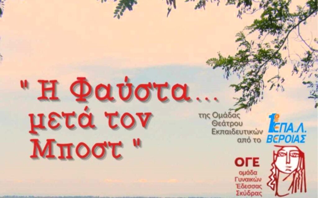 Η Ομάδα Γυναικών Έδεσσας Σκύδρας (μέλος ΟΓΕ), σας προσκαλεί να απολαύσετε το έργο του Μπόστ, Η Φαύστα από την θεατρική ομάδα εκπαιδευτικών του 1ου ΕΠΑ.Λ Βέροια