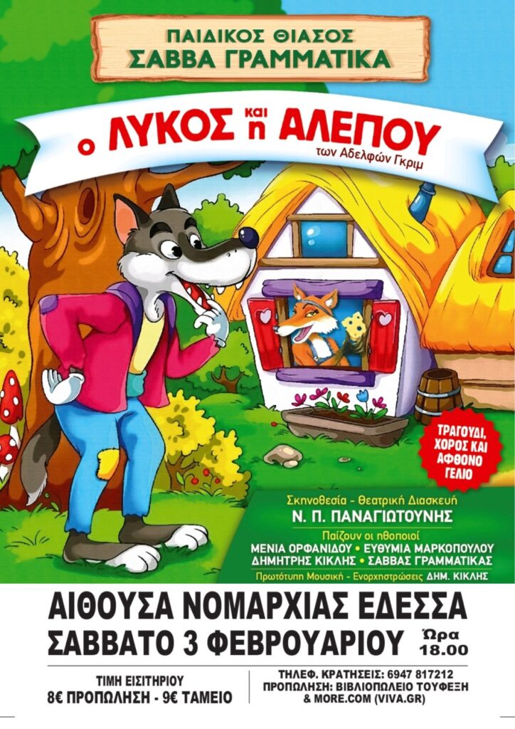 Κρατήσεις και πληροφορίες στο 6947817212 Προπώληση στο βιβλιοπωλείο Τουφεξή και στο https://www.more.com/theater/children/o-lykos-kai-i-alepou/
