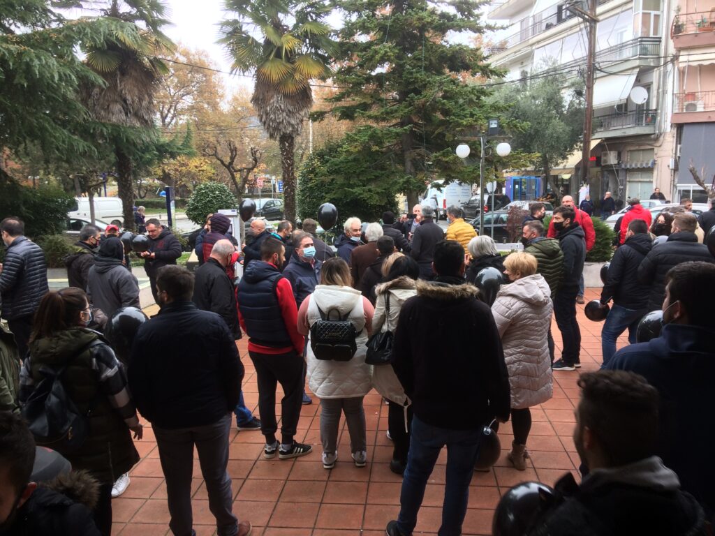Οι ιδιοκτήτες συγκεντρώθηκαν έξω από το δημαρχείο Έδεσσας προκειμένου να διαμαρτυρηθούν για τα μέτρα που πήρε η κυβέρνηση «γιατί δεν τιμωρούν τους ανεμβολίαστους, αλλά την εστίαση».