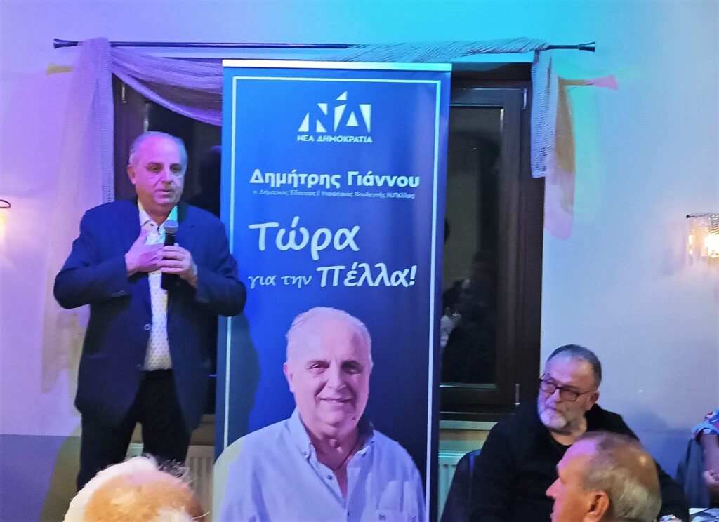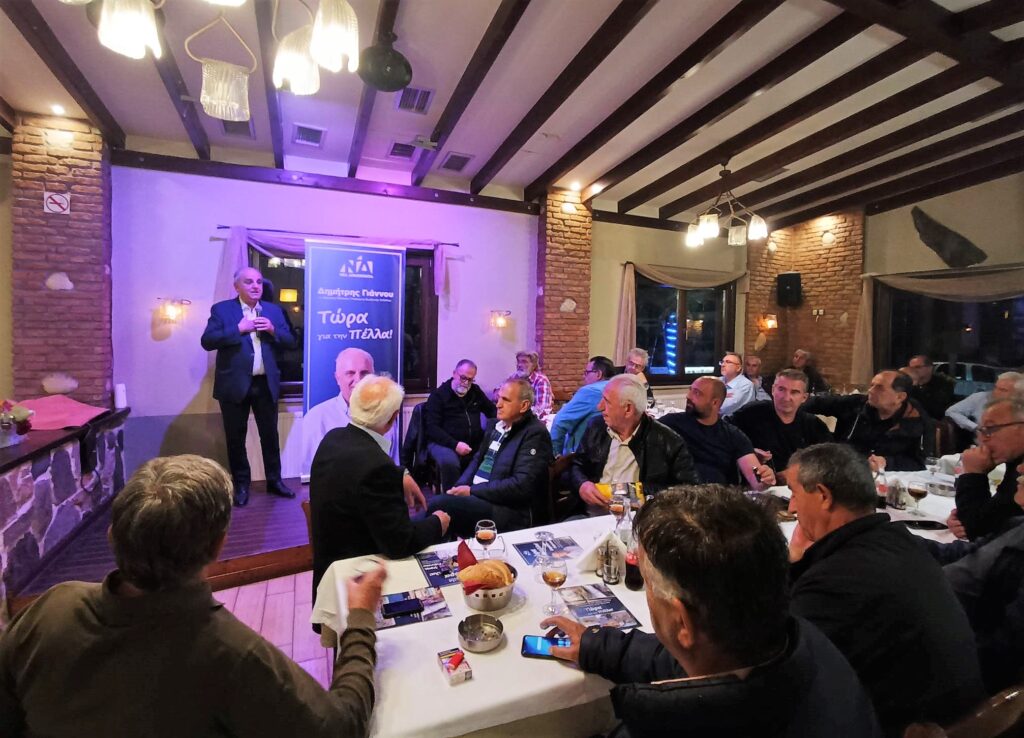 Ο Δήμαρχος Έδεσσας και υποψήφιος Βουλευτής με τη Νέα Δημοκρατία Δημήτρης Γιάννου υποδέχτηκε φίλους του από την Κρύα Βρύση σε ταβέρνα της πόλης, σε μια συνάντηση γνωριμίας με τον κόσμο της περιοχής και έστειλε μήνυμα ανθρωπιάς και πολιτικού πολιτισμού με τον ίδιο να είναι ιδιαίτερα χαρούμενος για την επιτυχία της εκδήλωσης