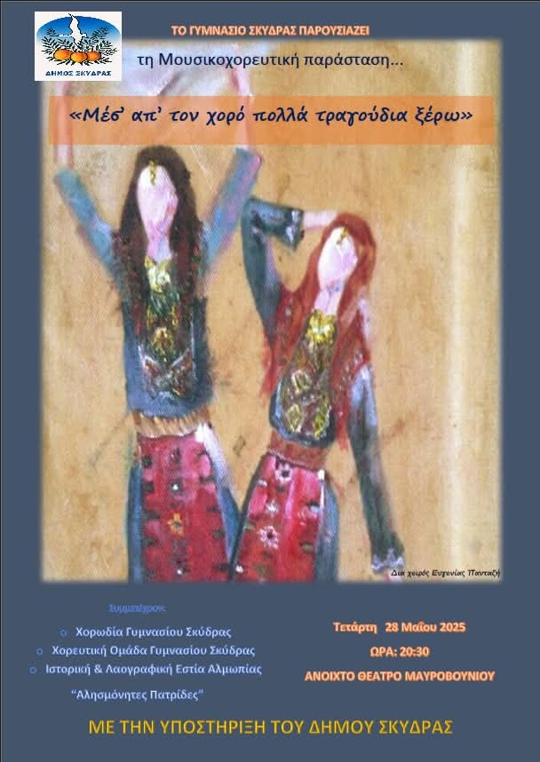 Και σας περιμένουμε όλους κι όλες για να δείτε κι εσείς πως το Γυμνάσιο Σκύδρας ΜΕΣΑ ΑΠ΄ΤΟΝ ΧΟΡΟ ΠΟΛΛΑ ΤΡΑΓΟΥΔΙΑ ΞΕΡΕΙ…