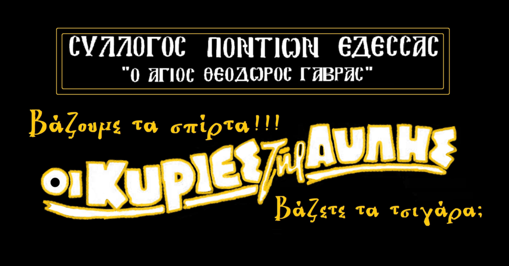 Η νεοσύστατη Θεατρική ομάδα “ΜΕΘΕΞΙΣ” του Συλλόγου Ποντίων Έδεσσας “Ο Άγιος Θεόδωρος Γαβράς” ανεβάζει την 2η παραγωγή της. “ΟΙ ΚΥΡΙΕΣ ΤΗΣ ΑΥΛΗΣ” θα υποδεχτούν το Θεατρόφιλο κοινό αμέσως μετά το Πάσχα!
