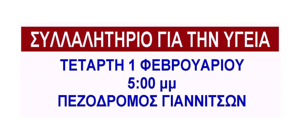 Όλοι αύριο Τετάρτη 1 Φεβρουαρίου στο μεγάλο Συλλαλητήριο για την Υγεία
