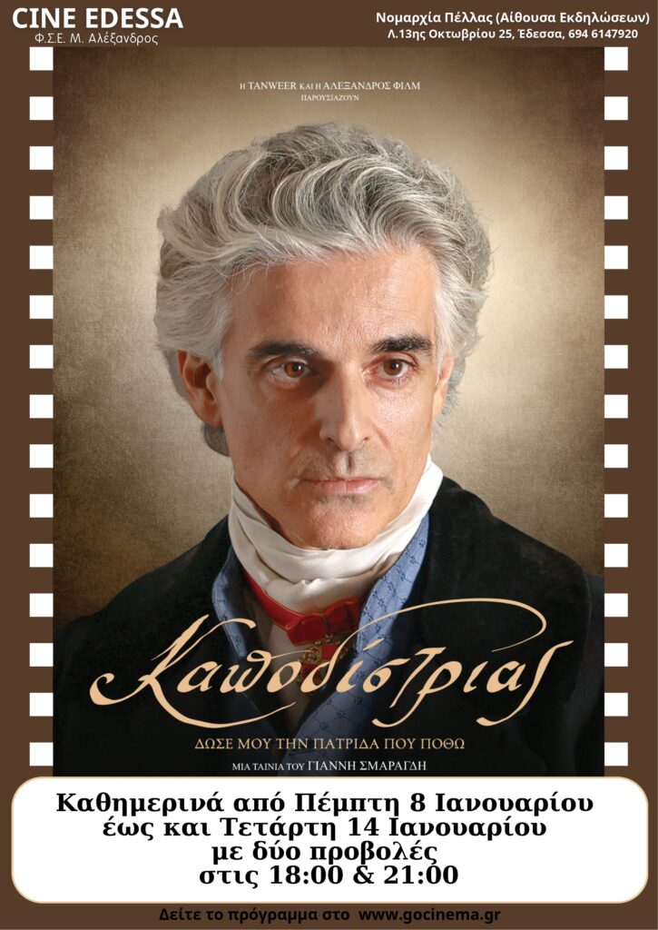 *ΚΥΡΙΑΚΗ 11, ΔΕΥΤΕΡΑ 12, ΤΡΙΤΗ 13 & ΤΕΤΑΡΤΗ 14 Ιανουαρίου 2026 –«Καποδίστριας» ΜΕ ΔΥΟ ΠΡΟΒΟΛΕΣ (18:00, 21:00)