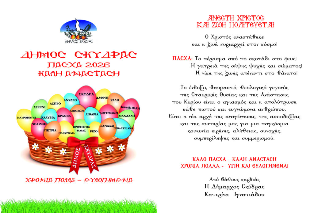Αρχική Ειδήσεις ΠΑΣΧΑΛΙΝΕΣ ΕΥΧΕΣ ΔΗΜΑΡΧΟΥ ΣΚΥΔΡΑΣ ΚΑΤΕΡΙΝΑΣ ΙΓΝΑΤΙΑΔΟΥΕιδήσειςΠΑΣΧΑΛΙΝΕΣ ΕΥΧΕΣ ΔΗΜΑΡΧΟΥ ΣΚΥΔΡΑΣ ΚΑΤΕΡΙΝΑΣ ΙΓΝΑΤΙΑΔΟΥΑπό Λεωνίδας Τούσιας - 3 Απριλίου 2026Facebook Twitter ΠΑΣΧΑΛΙΝΕΣ ΕΥΧΕΣ ΔΗΜΑΡΧΟΥ ΣΚΥΔΡΑΣ ΚΑΤΕΡΙΝΑΣ ΙΓΝΑΤΙΑΔΟΥΠΑΡΟΜΟΙΑ ΑΡΘΡΑΠΕΡΙΣΣΟΤΕΡΑ ΑΠΟ ΤΟΝ ΔΗΜΙΟΥΡΓΟ ΕιδήσειςΗ θεατρική παράσταση «Ελευθερία Κινήσεων» την Δευτέρα 13 Απριλίου στην αίθουσα Π.Ε. Πέλλας – Έδεσσα ΕιδήσειςΤο εορταστικό ωράριο της M. Εβδομάδος των καταστημάτων ΕιδήσειςΤο 2ο ΓΕΛ Έδεσσας ευχαριστήσει δημόσια την Ιερά Μητρόπολη Εδέσσης, Πέλλης και Αλμωπίας για την δωρεά εικόνων