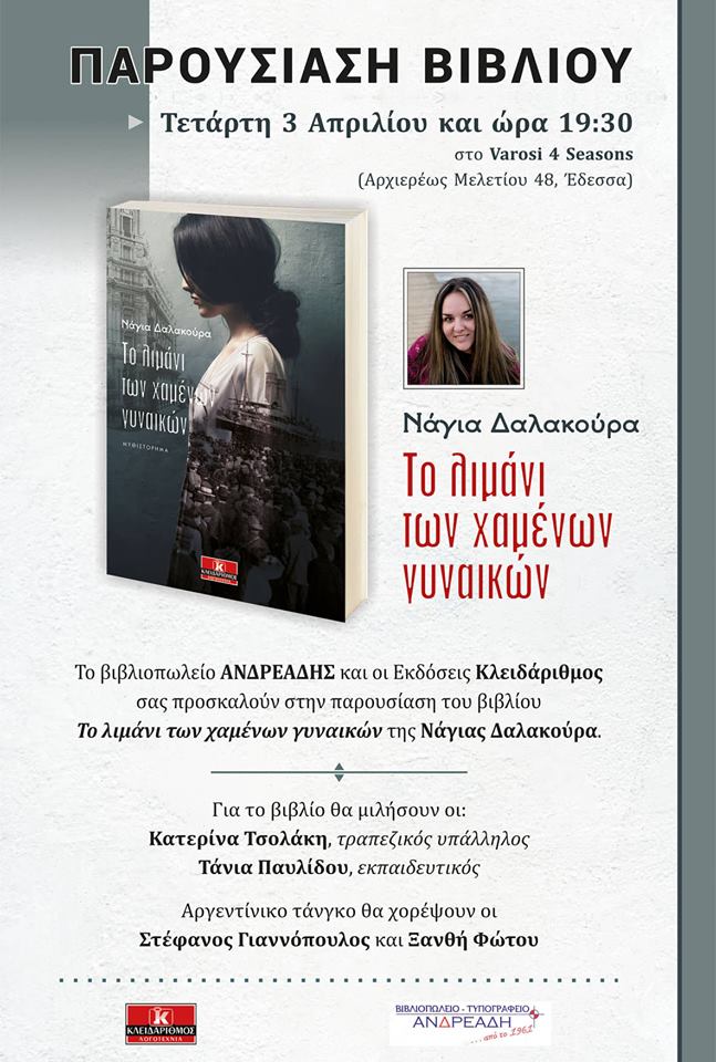 Παρουσίαση του βιβλίου της Νάγιας Δαλακούρα “Το λιμάνι των χαμένων γυναικών” την Τετάρτη 3 Απριλίου στις 19:30 στο Varosi 4 Seasons