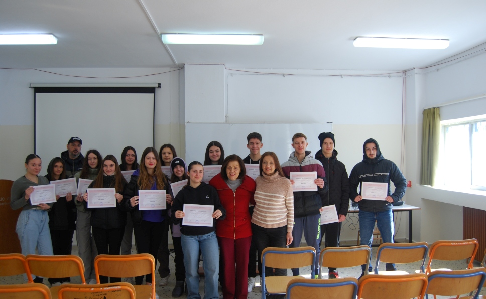 Τη Δευτέρα 29-1-2024 η πρόεδρος του Συλλόγου Καρκινοπαθών Έδεσσας και περιχώρων κ. Δανάη Τριγωνάκη επισκέφτηκε το σχολείο μας προκειμένου να βραβεύσει τους μαθητές και μαθήτριες που διοργάνωσαν το φιλανθρωπικό bazaar των Χριστουγέννων. Υπενθυμίζεται ότι εκείνη η δράση είχε φιλανθρωπικό χαρακτήρα και απέφερε ένα σημαντικό χρηματικό ποσό, το μεγαλύτερο μέρος του οποίου προσφέρθηκε στον Σύλλογο Καρκινοπαθών της πόλης μας.