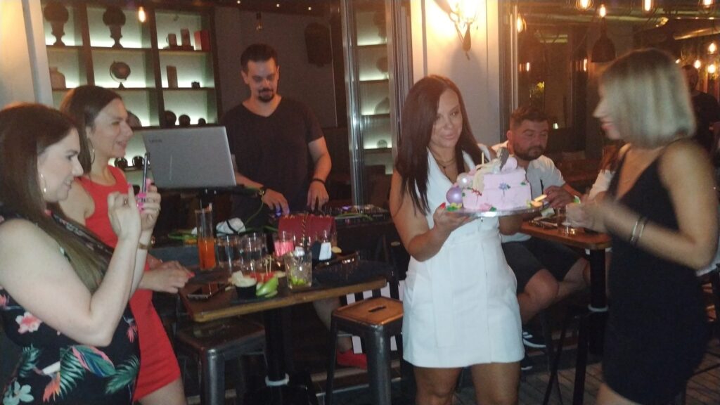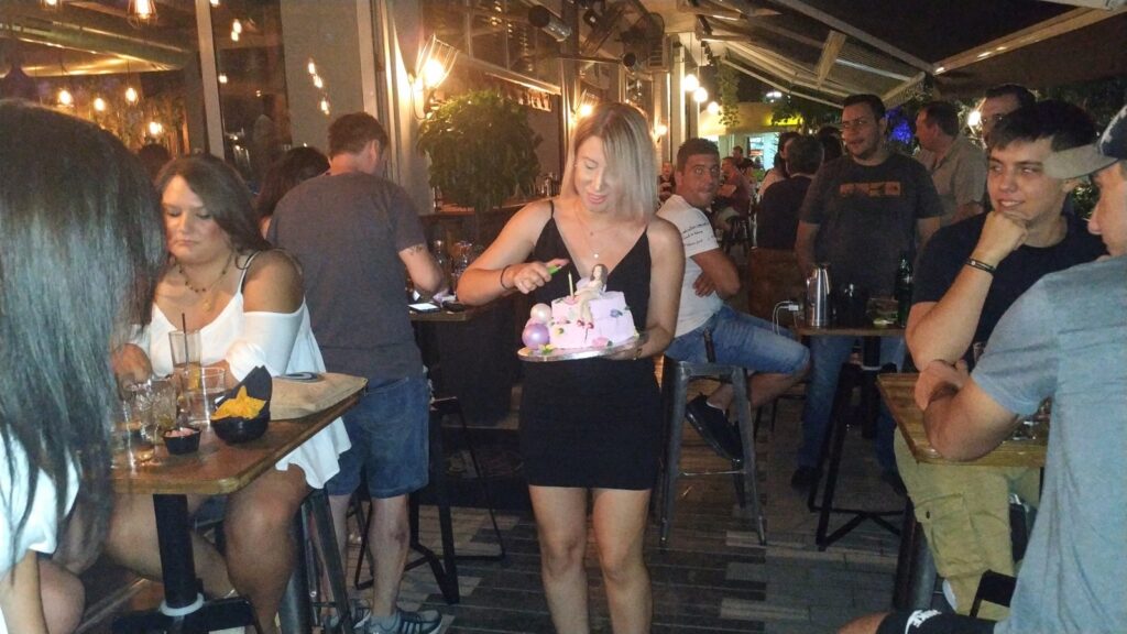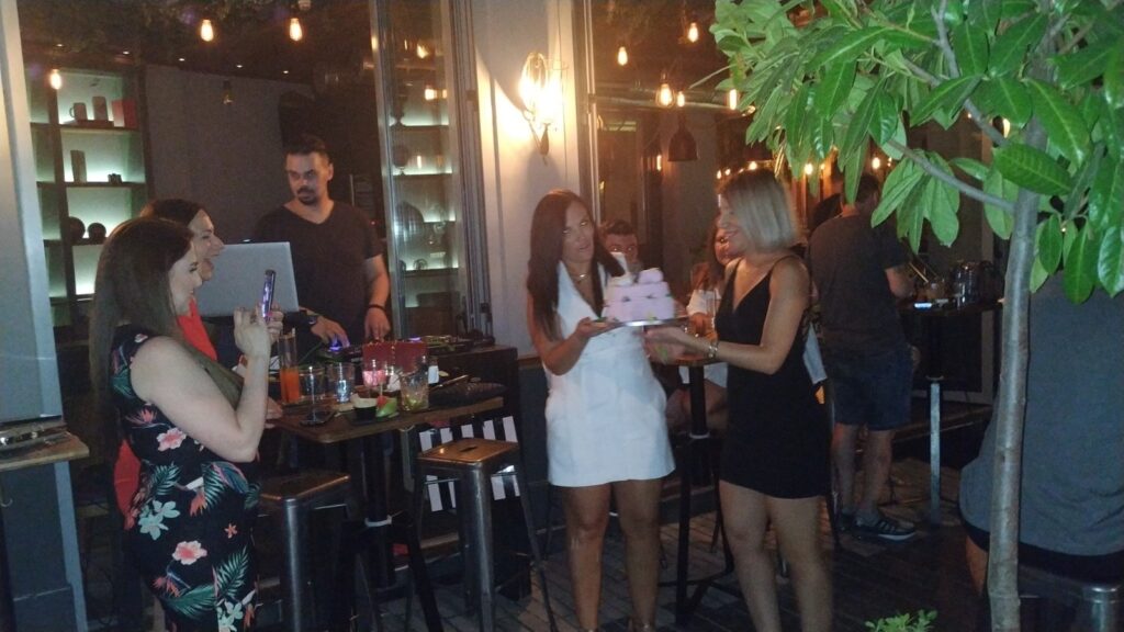 Ιδιαίτερη στιγμή ήταν όταν ακούστηκε το «Happy Birthday» και η Κατερίνα Τυριακίδου έφερε την τούρτα που επιμελήθηκε η ίδια. Η Έφη Προβίου έσβησε τα κεράκια και δέχθηκε ευχές από τους φίλους της ενώ στη συνεχεία η εορτάζουσα και η παρέα της απόλαυσαν την όμορφη βραδιά.