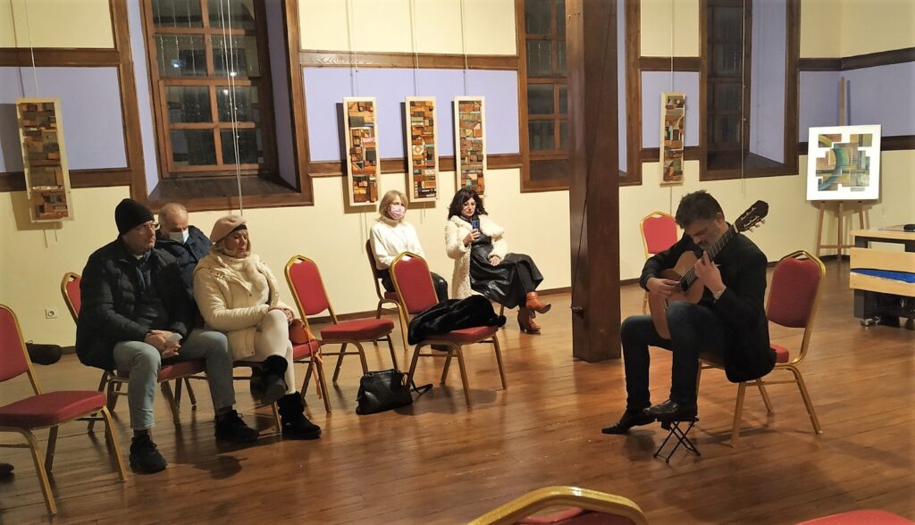 Για το βιβλίο μίλησαν η Ιφιγένεια Βαμβακίδου (Καθηγήτρια Νεότερης Ελληνικής Ιστορίας Α.Π.Θ.), ο Νίκος Ταμουτσέλης (Εικαστικός, Δρ Παιδαγωγικής Π.Δ.Μ.) και ο συγγραφέας, Ιωάννης Ανδρόνογλου Διδάκτωρ Μουσικολογίας του Εθνικού και Καποδιστριακού Πανεπιστημίου Αθηνών και σολίστ κιθάρας, ο οποίος στο δεύτερο μέρος της εκδήλωσης ερμήνευσε έργα για κιθάρα, για τα οποία γίνεται λόγος στο βιβλίο.