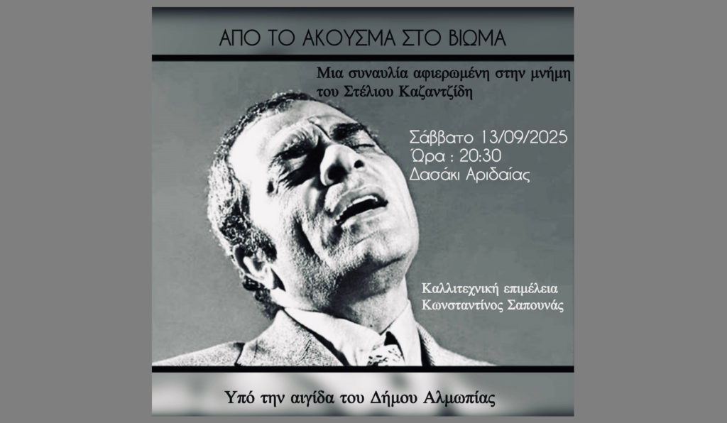 Στις 13 Σεπτεμβρίου 2025, θα διεξαχθεί στο Δασάκι Αριδαίας συναυλία αφιερωμένη στη μνήμη του Στέλιου Καζαντζίδη.